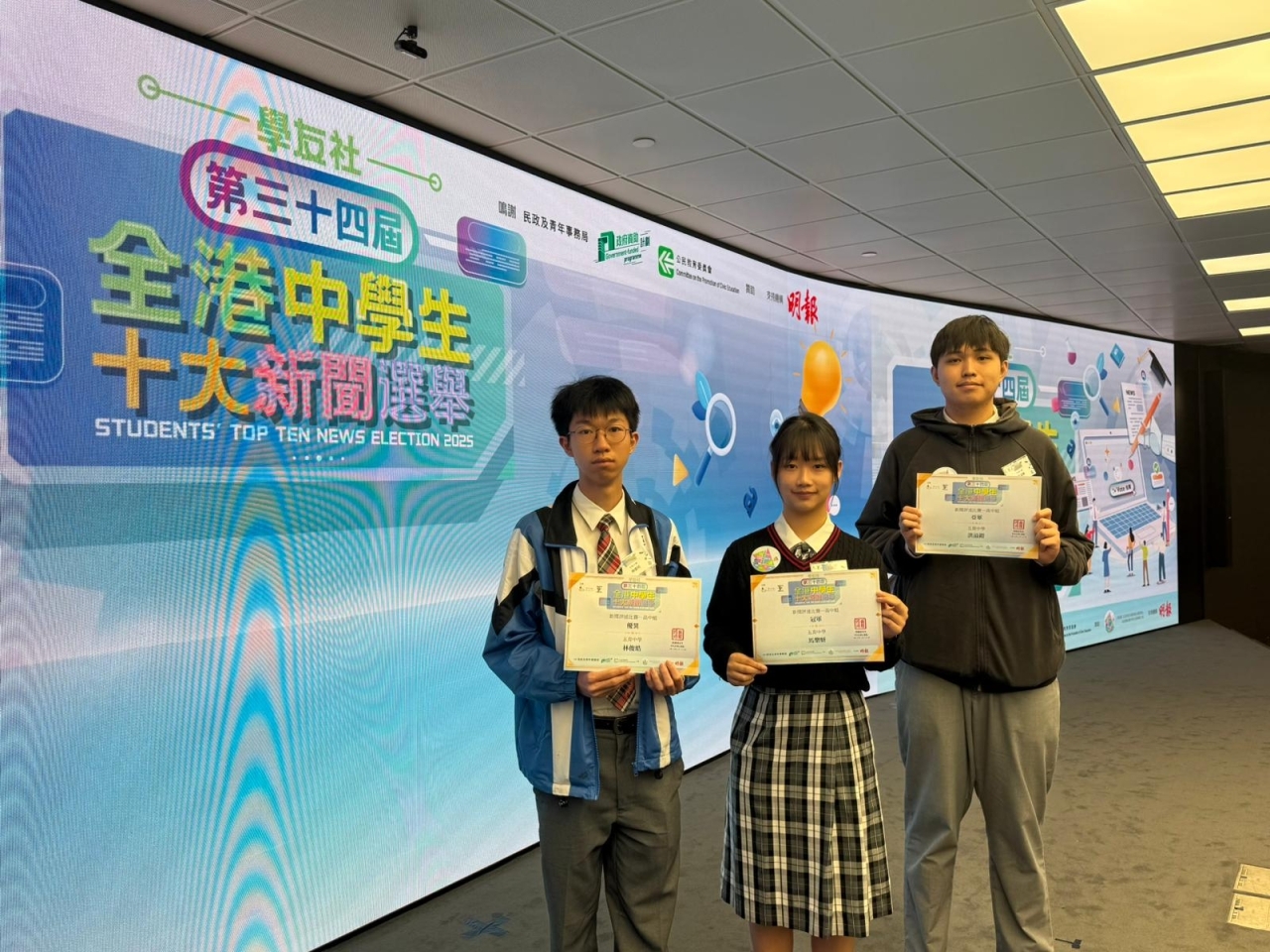 第三十四屆全港中學生十大新聞選舉 - 新聞評述比賽」,三位同學的評論文章在芸芸作品之中脫穎而出,