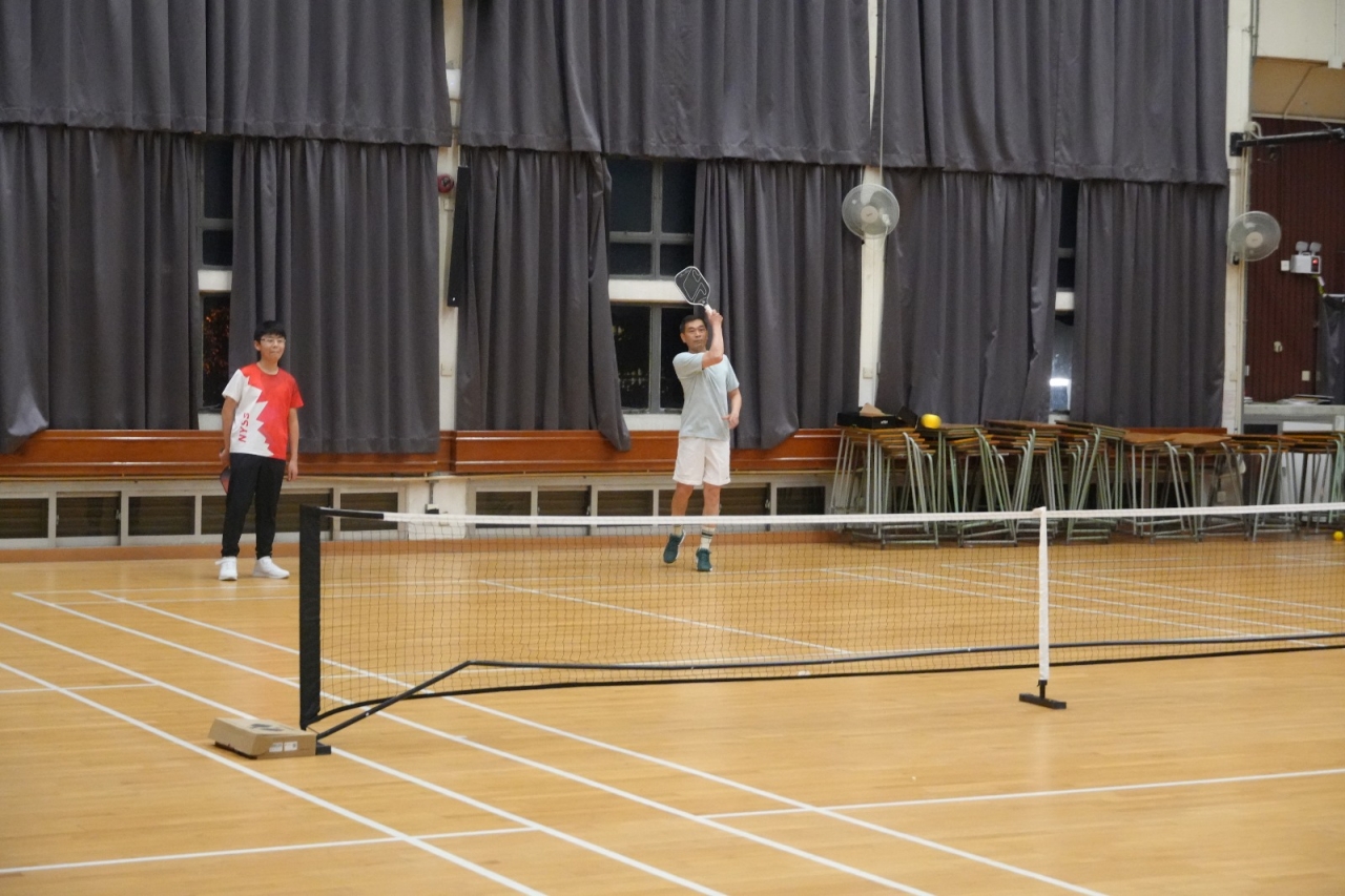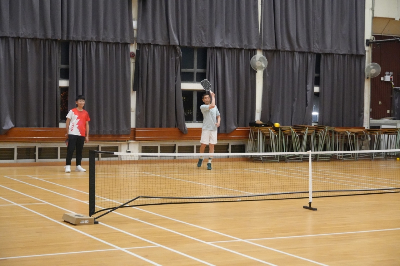 五育中學管治委員會主席,會德豐地產有限公司副主席黃光耀先生MH到校與家長學生同樂,參加親子匹克球和進行比賽。黃先生更頒發匹克球班和肌力訓練班參與證書給參與的家長和學生。